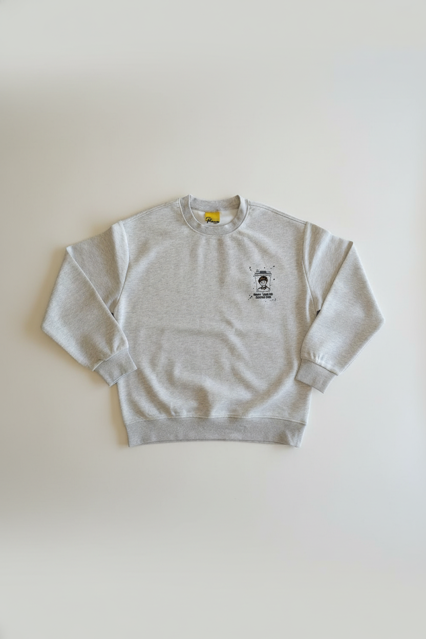 Men’s crew neck sweatshirt designed with a minimal front emblem and a narrative-driven illustrated back graphic. Crafted to combine expressive artwork with a refined, contemporary silhouette.